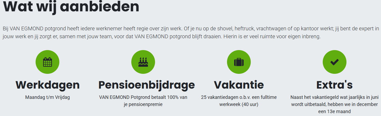 • Een pensioenregeling, 100% betaald door Van Egmond Potgrond